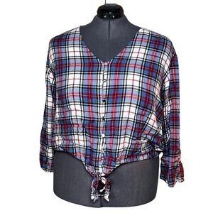 Lane Bryant Plaid Flannel Classic Button-Down Tie-Hem Top (Size 18)