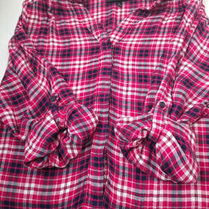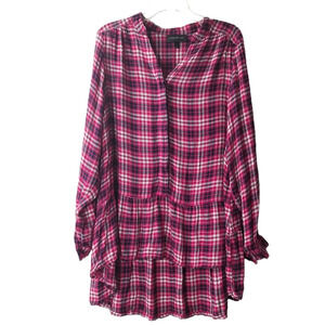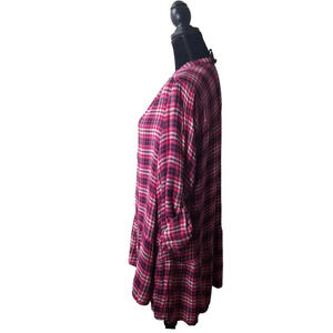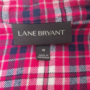 Lane Bryant Plaid Flannel Sz 18 Roll Tab Sleeves High Low Ruffle Hem Popover Top