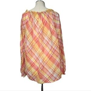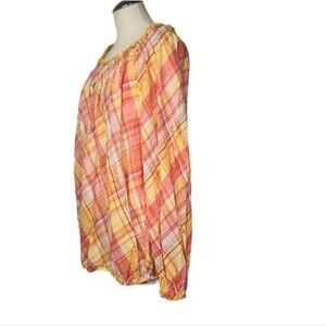 Lane Bryant blouse, long sleeves, thin & lightweight, plaid, front keyhole with button closure, size 18/20.