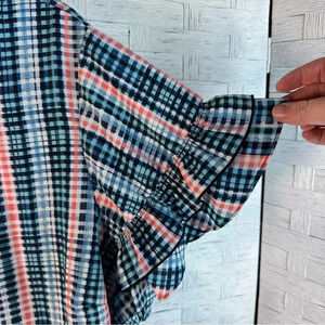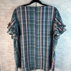 Lane Bryant Plaid Ruffle Sleeve Blouse - Blue and Pink