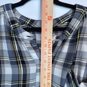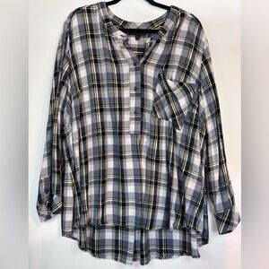 Lane Bryant Plaid Tunic Top Size 28 Blue Gray Black Rayon Long Sleeve