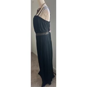 Lane Bryant Pleated Beaded Waist Front Palazzo Sleeveless Black Jumpsuit 16