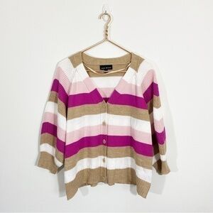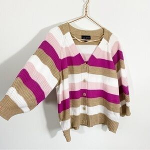 Lane Bryant. Size 18/20. Striped cardigan sweater. Balloon puff sleeves. Excellent condition, no flaws. See measurements in photos. Z