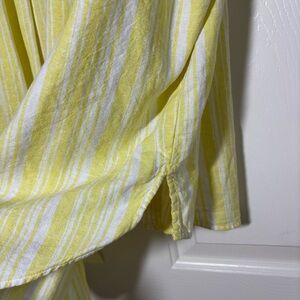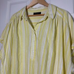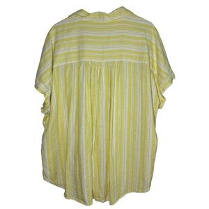 Lane Bryant Plus 22 Linen Blend Top Yellow Stripe Short Sleeve Flowy Loose Lagom