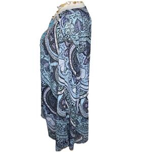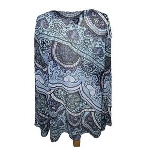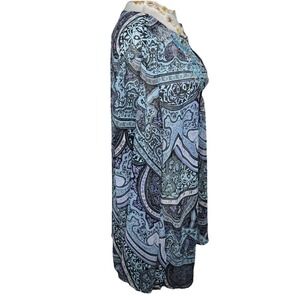 Lane Bryant Plus Blue Printed Sheer Beaded Blouse Top Tunic Womens Size 18/20
