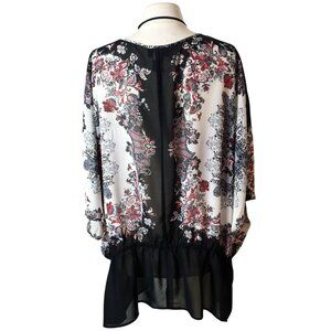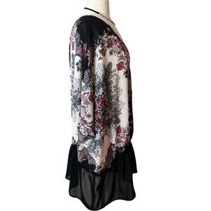 Lane Bryant Plus Chiffon Tunic 26/28 Blk Red Wht Floral Artsey Boho Chic Office