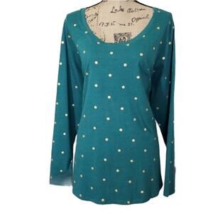 Lane Bryant Plus Foil Dot Womans longsleeve T Shirt Teal Green Size 18 / 20