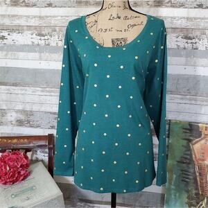 Lane Bryant Plus Foil Dot Womans longsleeve T Shirt Teal Green Size 18 / 20