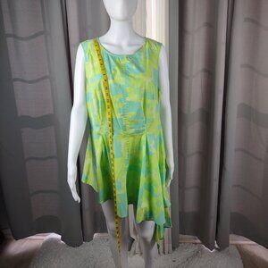 Lane Bryant Size 16 Sleeveless Hi-Low Asymmetrical Hem Dress Green Blue Abstract Print Cotton