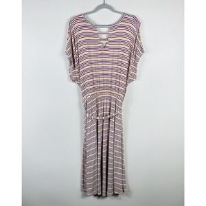 Lane Bryant Plus Size 18 20 Hi-Lo Belted Midi Dress Candy Rainbow Striped