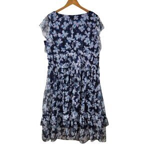 Lane Bryant Plus Size 18/20 2X Shirt Dress Floral Navy Ruffle Tiered Skirt Long