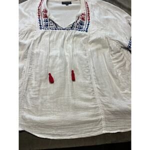 Lane Bryant Plus Size 18/20 Relaxed Flutter Sleeve Top Tassle w/Blue Embroidery