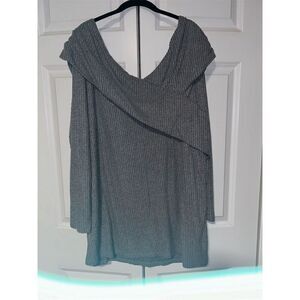 This Lane Bryant blouse is designed for women, featuring a relaxed fit in a plus size 26. The off-the-shoulder style in a solid gray color is crafted from waffle knit fabric, making it ideal for casual fall occasions. Perfect for a laid-back day out or a casual gathering. The blouse is new with tags.