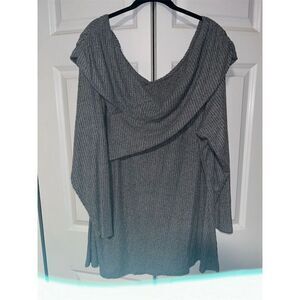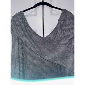 Lane Bryant Plus Size 26 Gray Off-The-Shoulder Waffle Knit Blouse