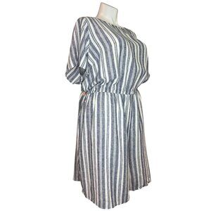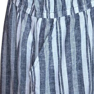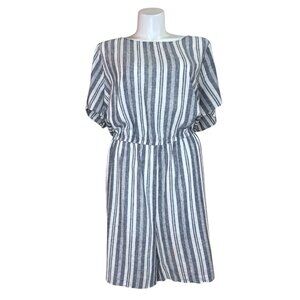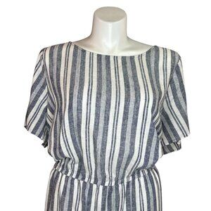 Lane Bryant Plus Size 26 Linen Blend Striped Wide Leg Romper Navy White Pockets