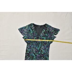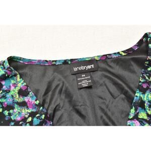 Step out in vibrant style with this Lane Bryant Plus Size 28 Chiffon Short Sleeve Dress. Featuring an eye-catching abstract pattern in shades of green, purple, and black, this dress is perfect for various occasions. The lightweight chiffon material ensures comfort and a flowy silhouette. This Lane Bryant dress is designed for a flattering fit, making it a versatile addition to your wardrobe. The V-neckline adds a touch of elegance, while the short sleeves provide a comfortable and chic look. Made from 100% polyester with a matching polyester lining, it's easy to care for and durable. Ideal for casual outings, parties, or even a semi-formal event, this dress can be paired with sandals for a relaxed look or heels for a more dressed-up ensemble. Please refer to the images for detailed measurements and condition. Excellent used condition with no visible flaws.