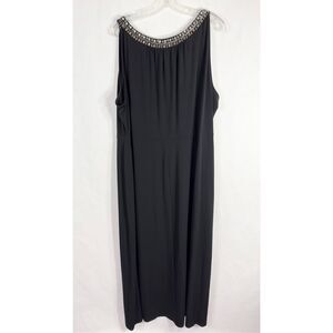 Lane Bryant Plus Size 28 Maxi Dress Black Beaded Rhinestones Stud Sleeveless 672