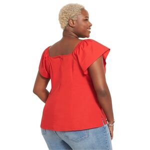 A red-hot fitted top with a romantic neckline and flattering seams.