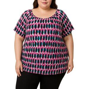 Lane Bryant Plus Size 34/36 Multicolor Abstract Pattern Top Short Sleeve Blouse