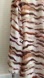 • Sheer woven fabric with brown, orange, and cream animal stripe print