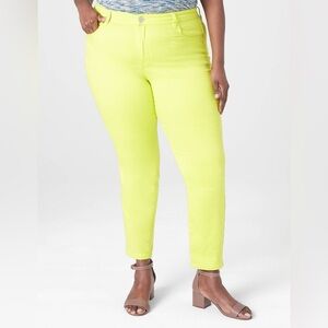 Lane Bryant Plus Size Curvy Fit Sateen Skinny Pants in Neon Yellow/Lime Green
