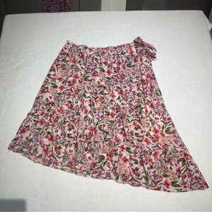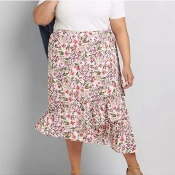 Lane Bryant Plus Size Floral Assymetric Hem Faux Wrap Knee Length Skirt Fair