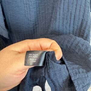 Lane Bryant Plus Size Navy Blue Textured Tie Neck Blouse Size 24