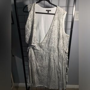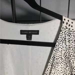 Lane Bryant Plus Size White and Black Polka Dot Faux Wrap Top Dress EUC
