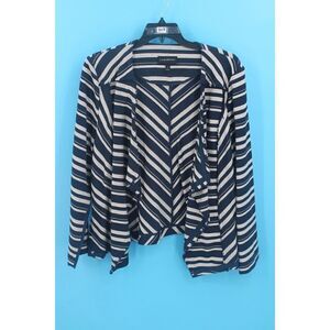 Lane Bryant Plus Sz 22 Navy Ivory Stripe Blazer Open Front Raw Seam