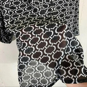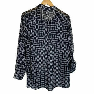 Lane Bryant Plus-size 16 black + white print sheer button down blouse