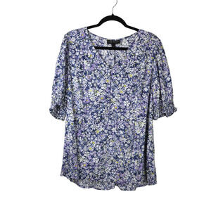 Lane Bryant Puff-Sleeve Button-Front Peplum Top EUC Sz 14 Summer Spring Floral