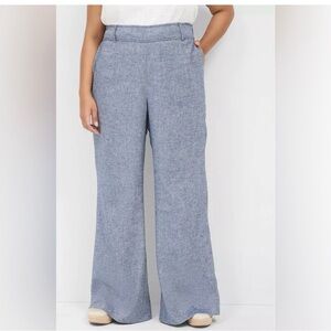 Lane Bryant Pull-On Chambray Linen Straight Leg Pant Blue Plus Size 24 Flowy NWT