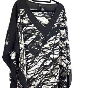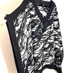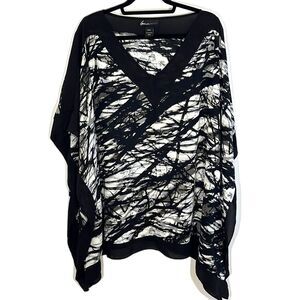 Lane Bryant Pullover V Neck BatWing Top Black White Size 22/24