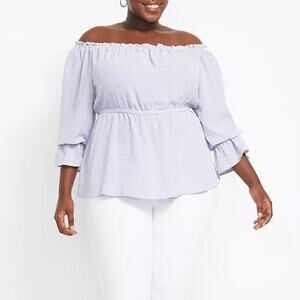 Lane Bryant Purple Convertible Off The Shoulder Bracelet Sleeve Clip Dot Top