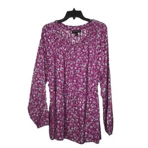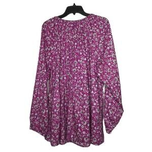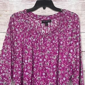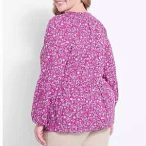 Lane Bryant Purple Ditzy Floral Swiss Dot Peplum Keyhole Top Size 18/20 Plus