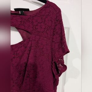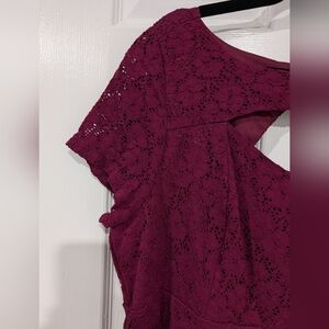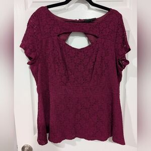 Lane Bryant Purple Eyelet Lace Peplum Short Sleeve Blouse in Size 22