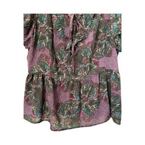 Lane Bryant Purple Floral Peplum Top Sz 16 Short Puff Sleeve Boho Peasant Fairy