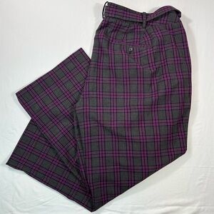 Lane Bryant Purple Gray Bold Plaid Wide Leg Pants