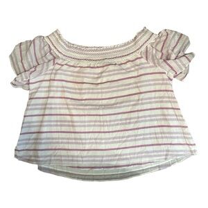Cute purple pinkish stripes with tiny gold stripes. Off the shoulder. A perfect top for the summer and spring seasons.