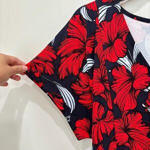 Features: Lane Bryant Dress Womens Plus Size 18. Red black floral. Stretchy, with a good fabric weight. Pockets!