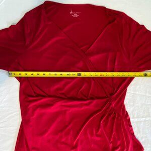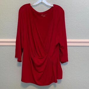 Lane Bryant Red Faux Wrap Top Plus Size 22/24 3/4 Sleeve Draped V-Neck Stretch