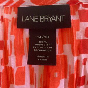 This vibrant Lane Bryant red print peasant blouse adds a pop of color and effortless style to your wardrobe. Featuring a modern geometric pattern with crochet trim and covered buttons, this top pairs beautifully with jeans, capris, or white pants for a chic boho-inspired look. The 3/4 sleeves and flowy cut offer comfort and movement, making it perfect for work, casual outings, or vacation wear.