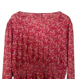 Lane Bryant Red Pink Floral V neck Peplum Quarter Sleeve Sheer Blouse Size 22/24