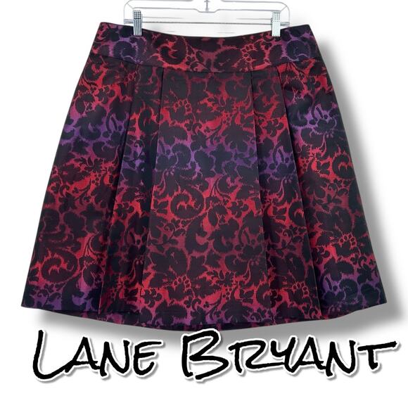 Lane Bryant Red Purple Baroque Jacquard A-Line Skirt Pleated Womens Plus 16