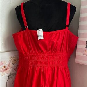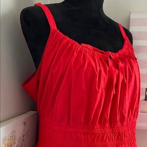 Vibrant red dress. Sleeveless design. Perfect for any occasion. Stretchy at waist