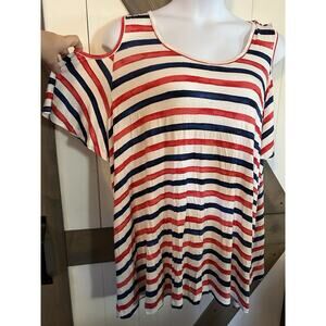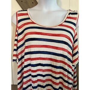 Lane Bryant Red White Navy Stripe Swing Collection Cold Shoulder Swing Tee 22/24
