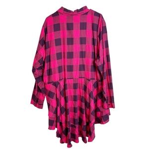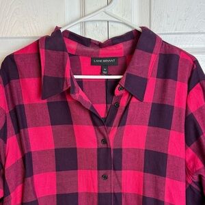 Lane Bryant Red and Black Buffalo Check Plaid Peplum High Low Top