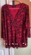 Elegant blouse with intricate red and black design. Features a flattering V-neck and three-quarter sleeves.