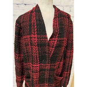 Lane Bryant Red/Black Plaid Tweed Shimmer Unlined Jacket Pockets Plus Size 26/28