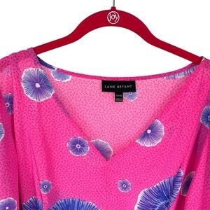 Lane Bryant Relaxed Long Sleeve V Neck Babydoll Blouse in Batik Size 18/20